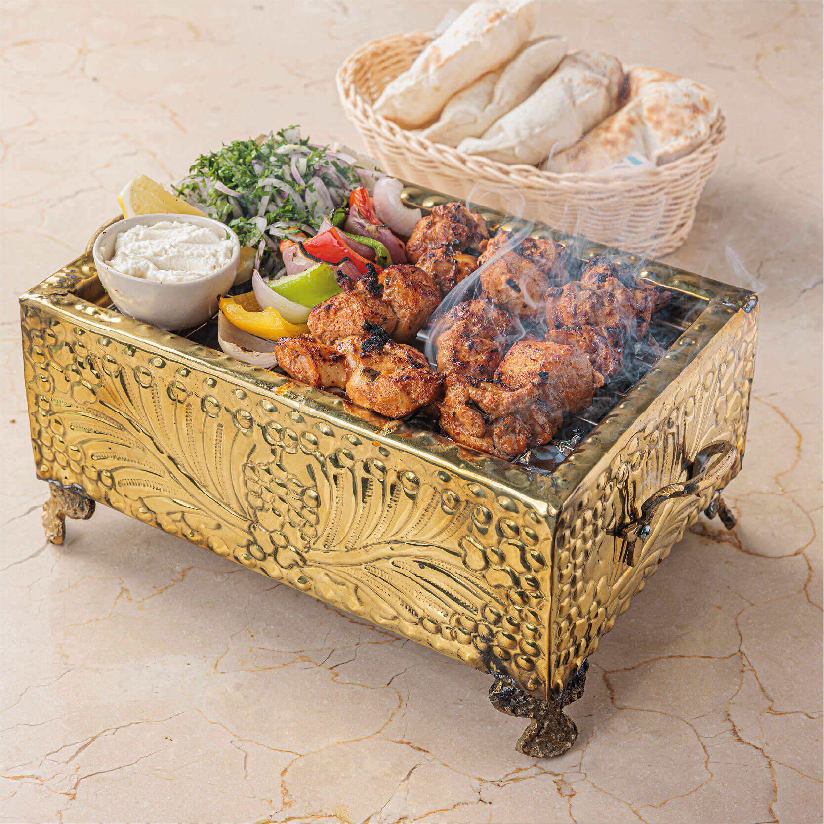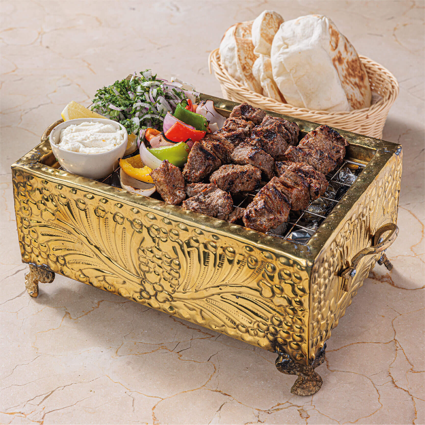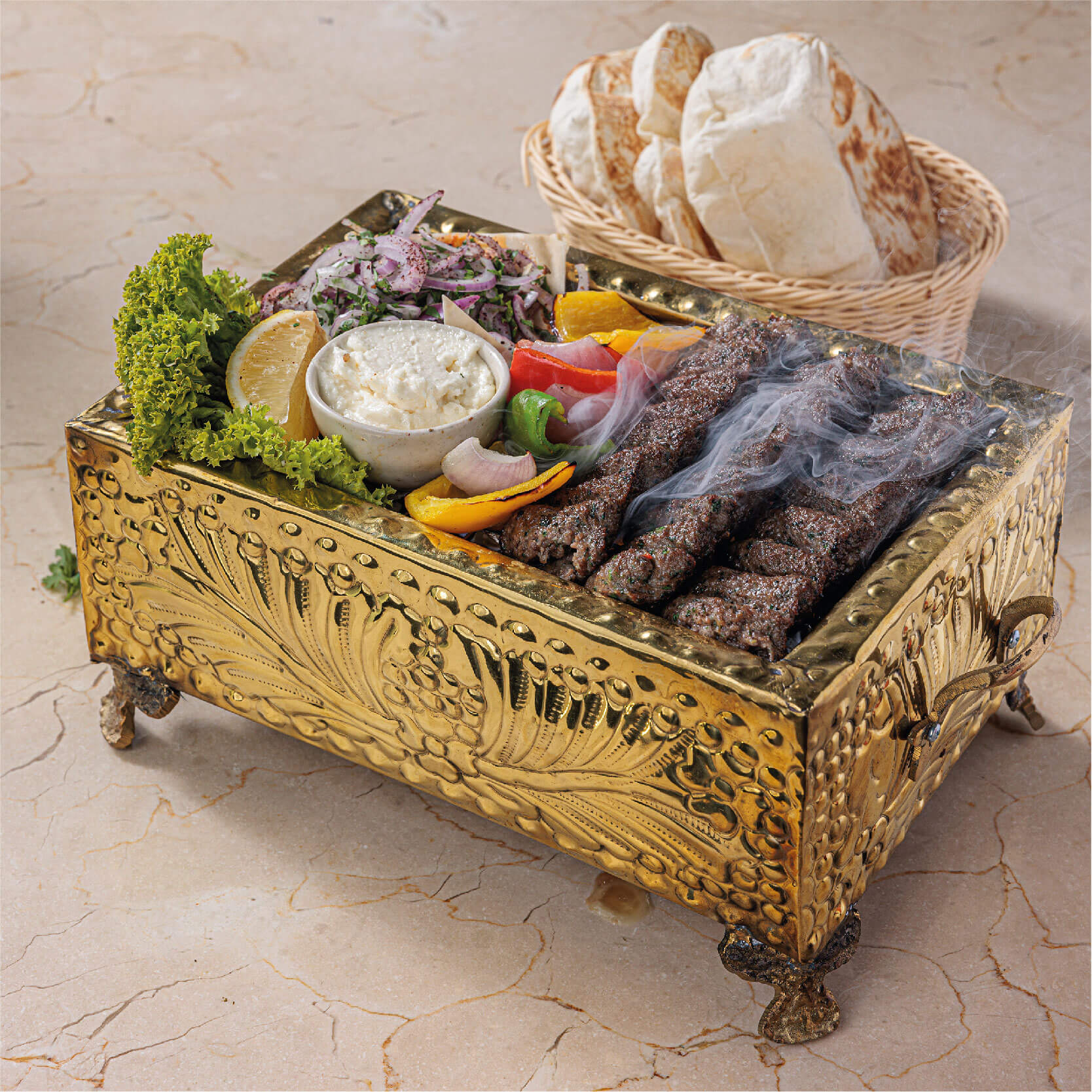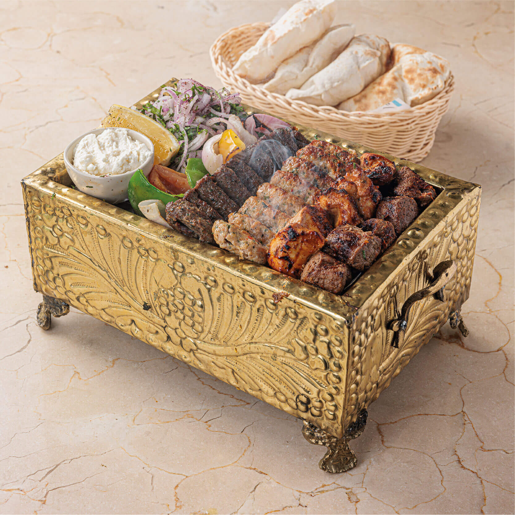 Mezza house Combination of grill, selection, such as chicken kebab, kofta kabab, shish tawook, meat tikka.