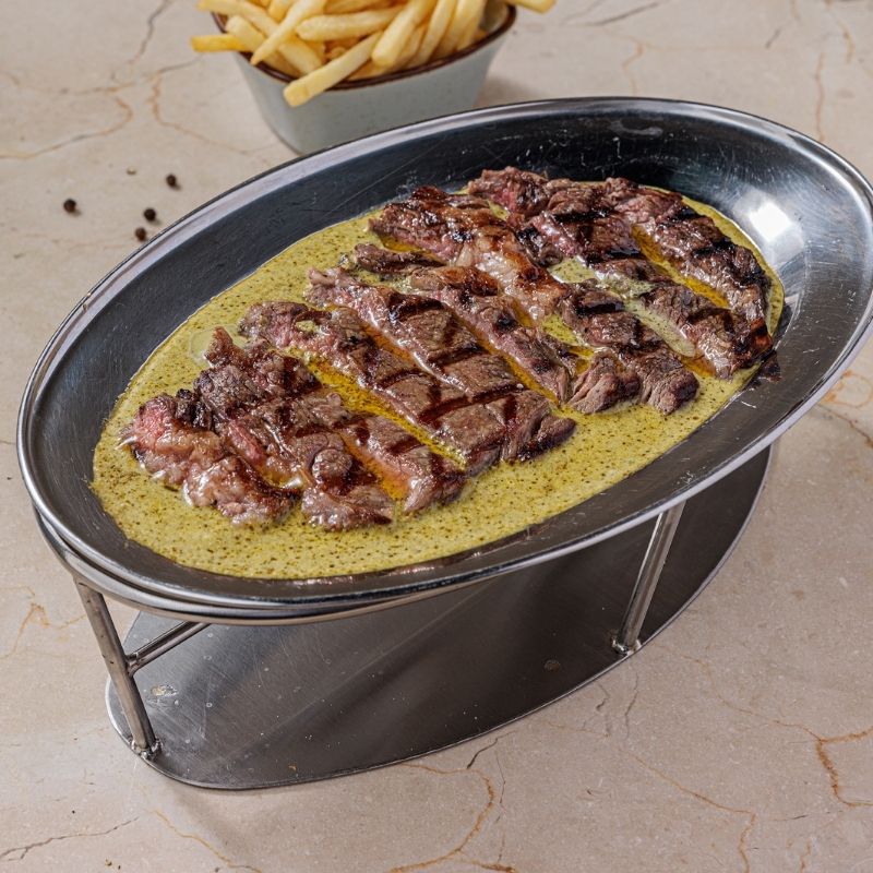 Grass fed 300 grams beef steak, fries & salad. Choices of sauce: Pepper | Mushroom Choices of side: French Fries, Mashed Potato, Grilled Vegetable